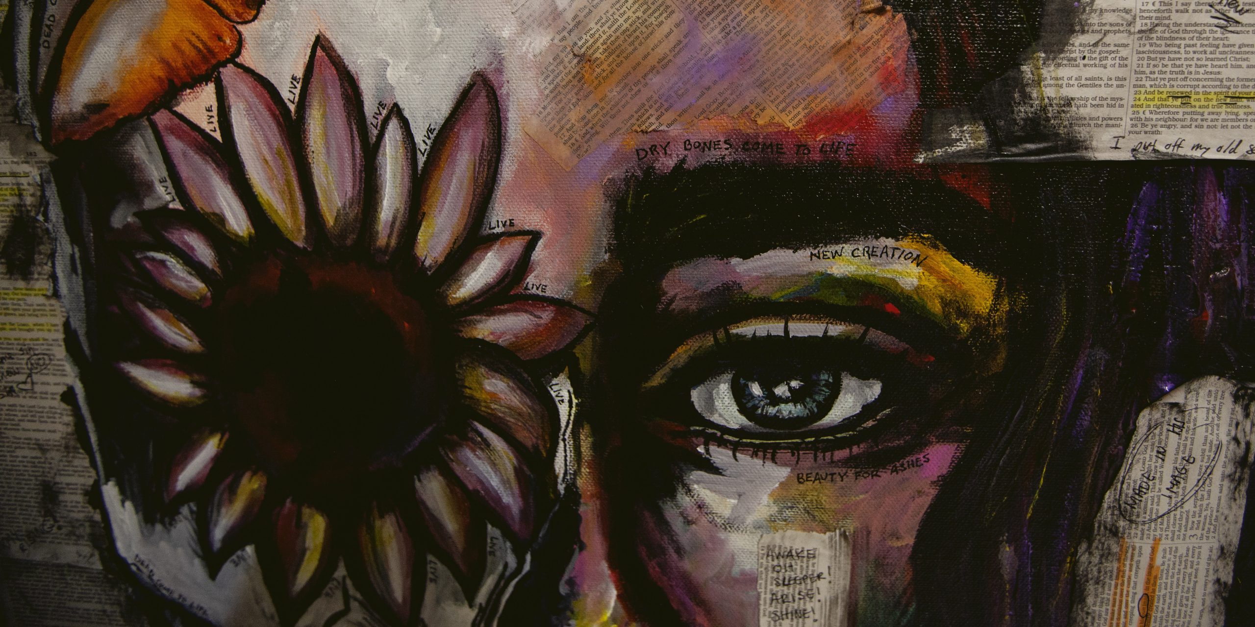 30X40 INCHES | CANVAS | MIXED MEDIA: Acrylic, Metalic Paint, Bible Pages