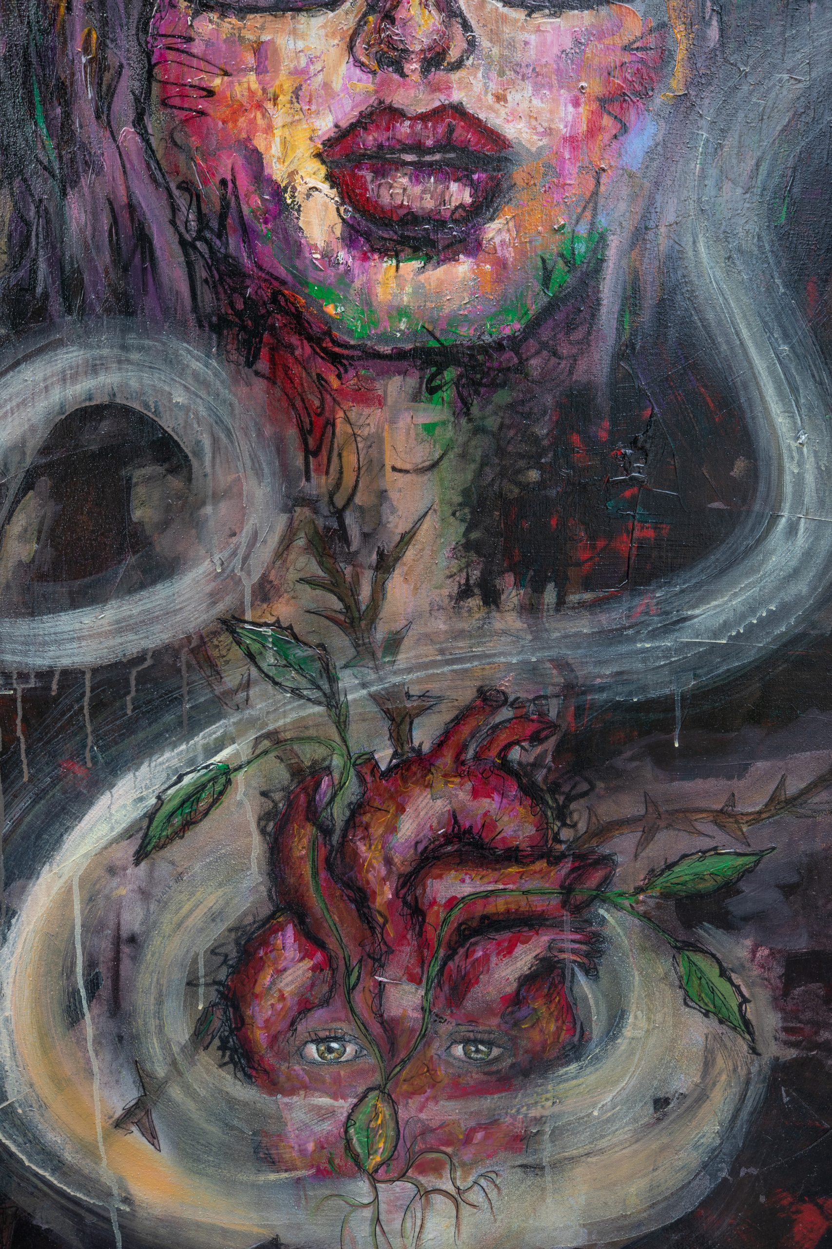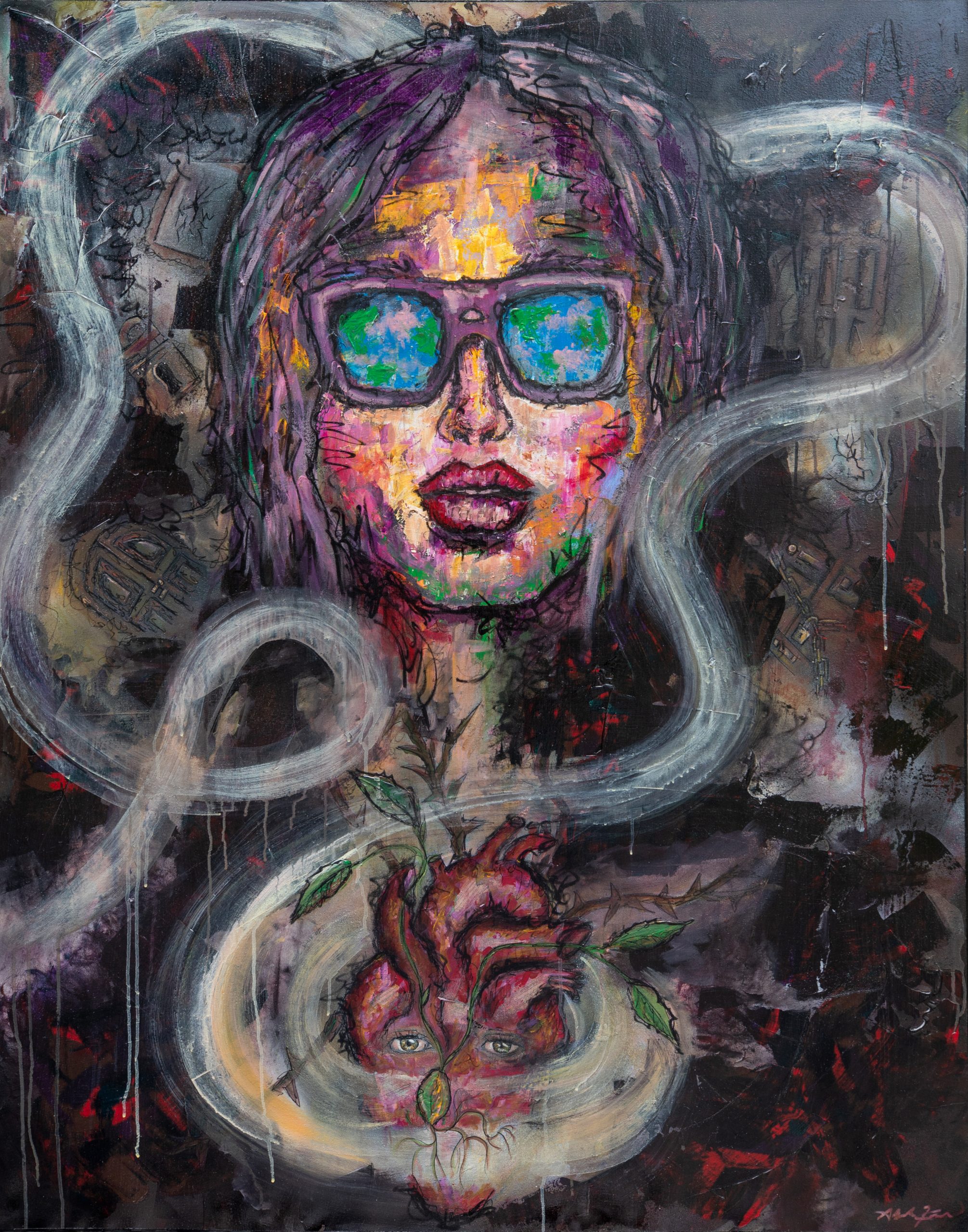 4X5FT | CANVAS | MIXED MEDIA: PLASTER, SPRAYPAINT, Acrylic